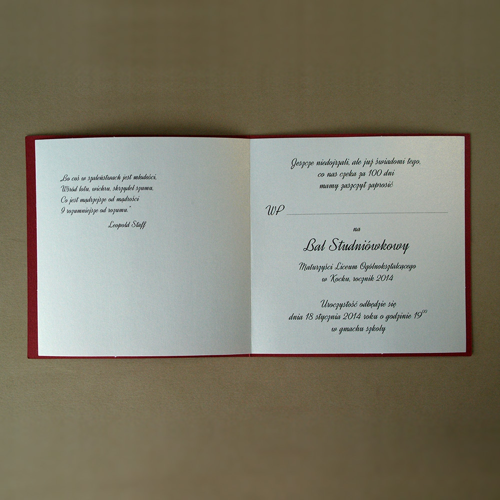 Zaproszenie wykonane z matowego kartonu