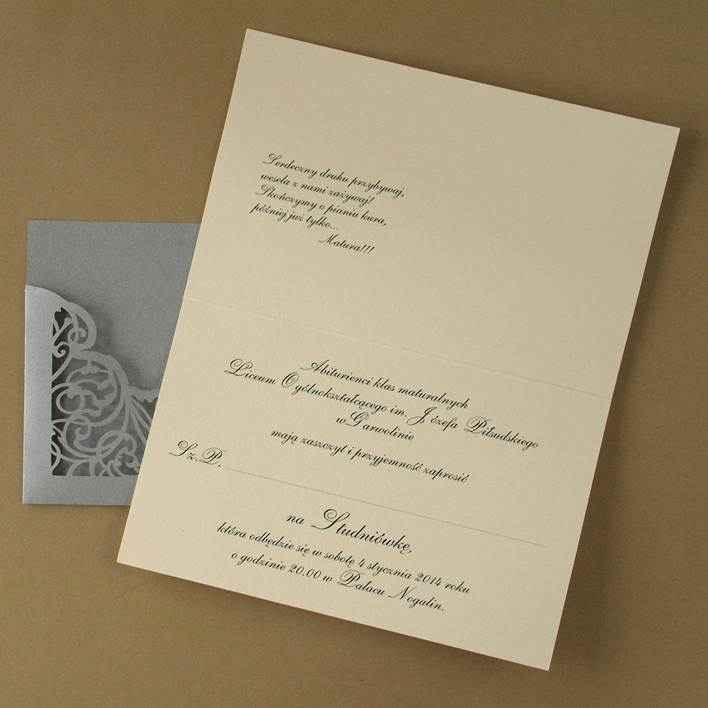 Standard Plus w odróżnieniu od Standard daje Państwu możliwość wydrukowania w zaproszeniach szczegółowych danych dotyczących studniówki (nazwa szkoły, data, godzina, miejsce).