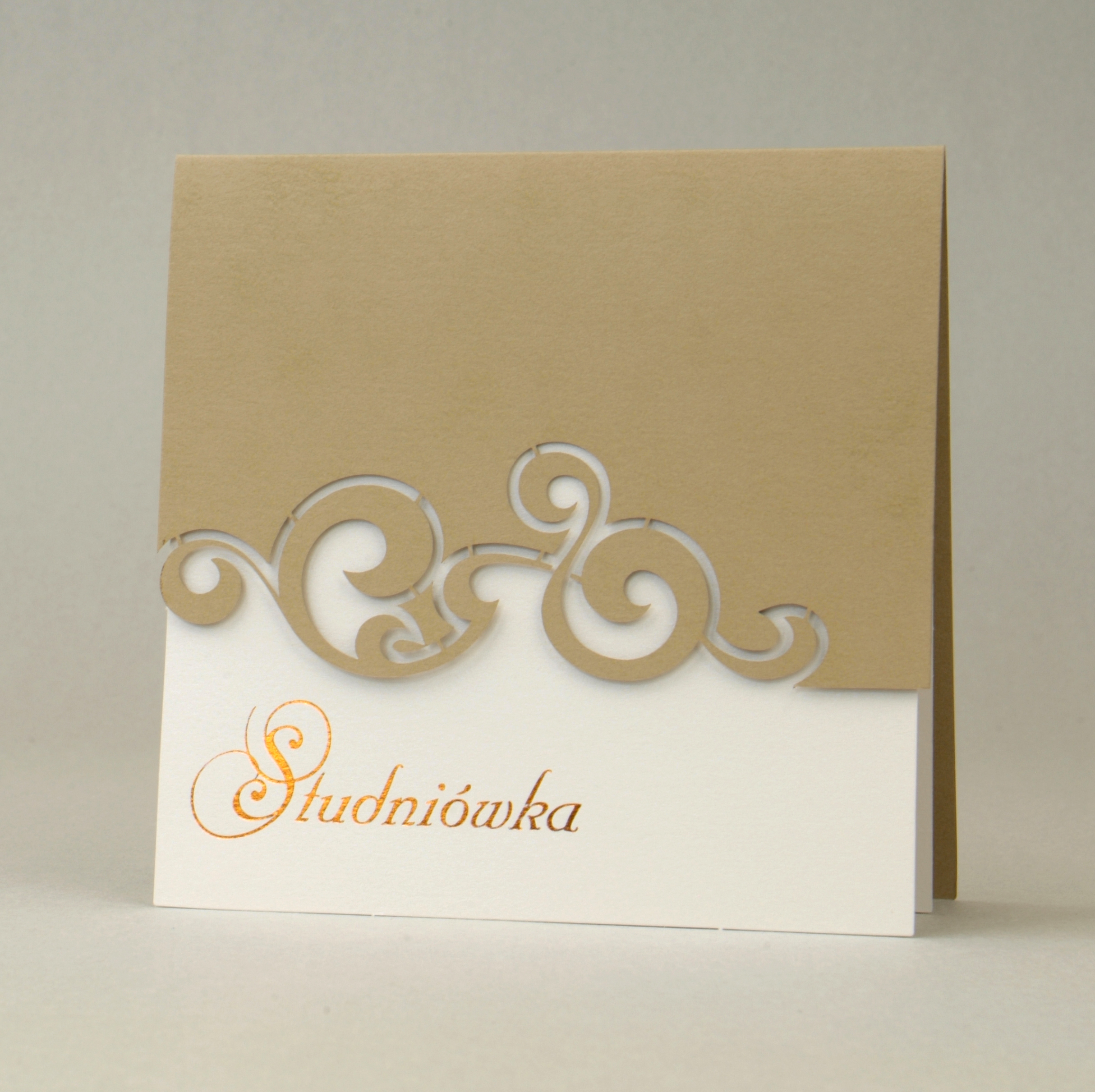 Wkład z perłowego kartonu w kolorze kremowym ozdobiony złoceniem.