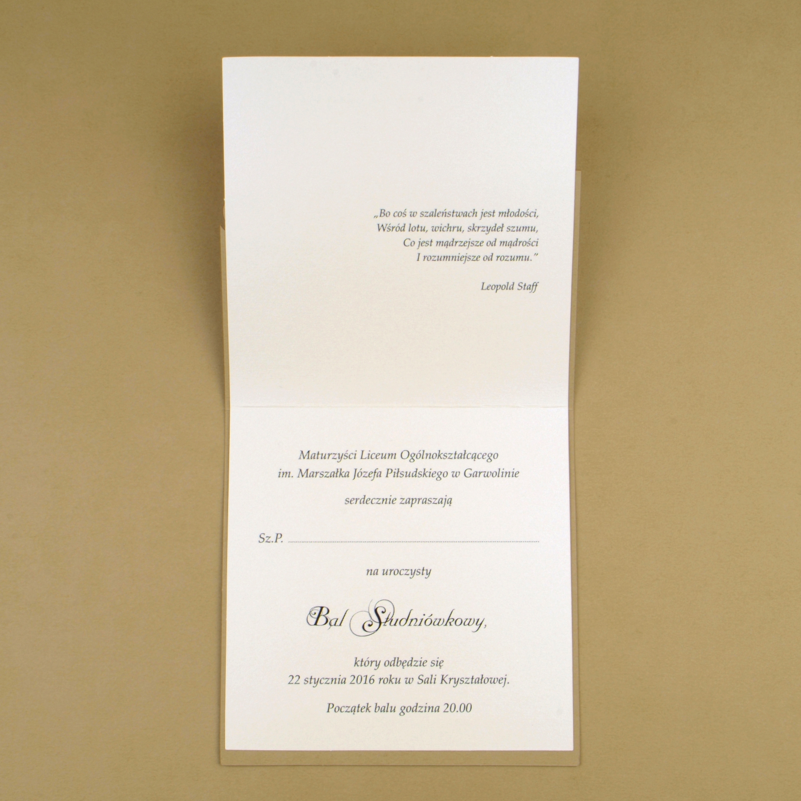 Standard Plus w odróżnieniu od Standard daje Państwu możliwość wydrukowania w zaproszeniach szczegółowych danych dotyczących studniówki (nazwa szkoły, data, godzina, miejsce).