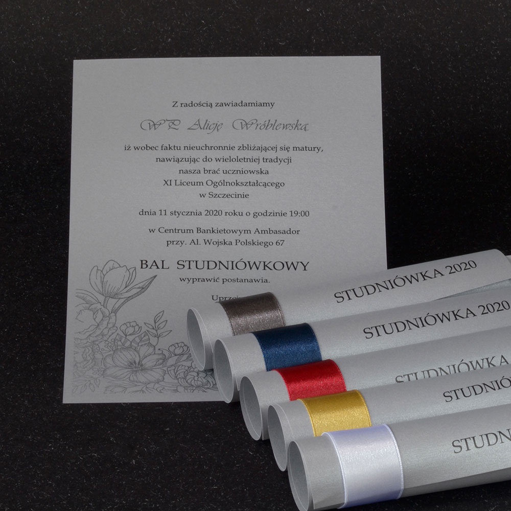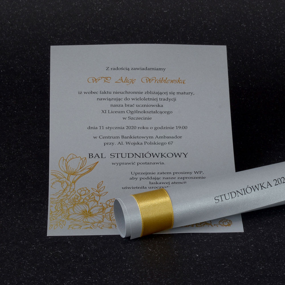 Zaproszenie zwijane, wykonane z perłowego kartonu