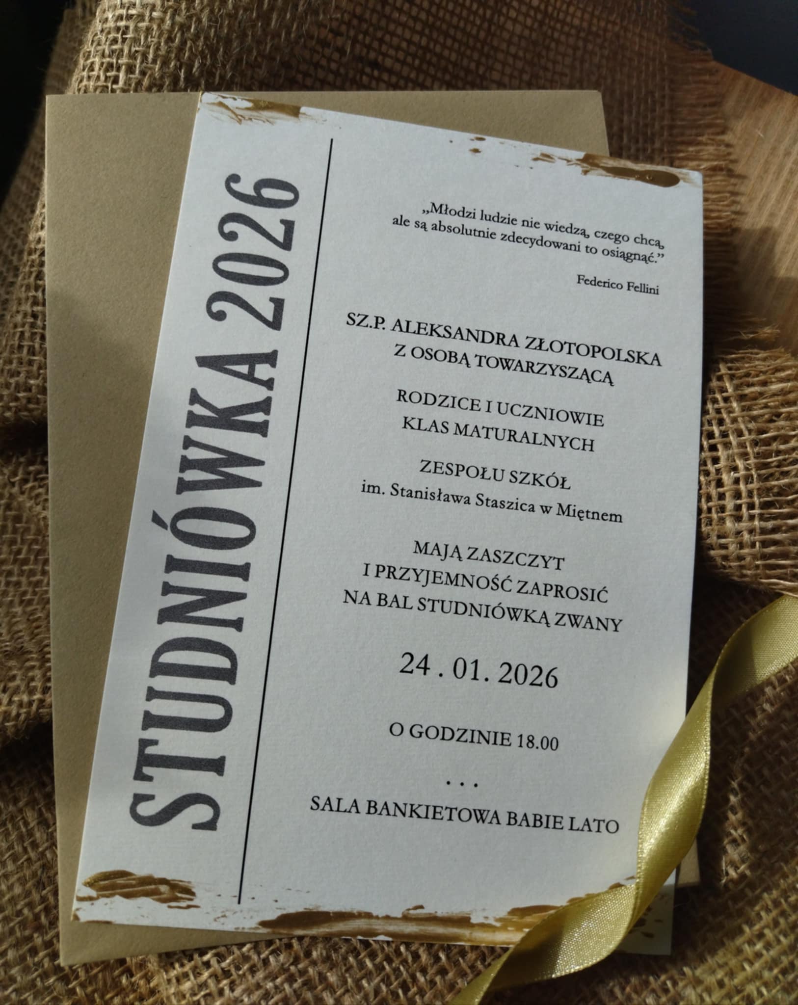 Standard Plus w odróżnieniu od Standard daje Państwu możliwość wydrukowania w zaproszeniach szczegółowych danych dotyczących studniówki (nazwa szkoły, data, godzina, miejsce).